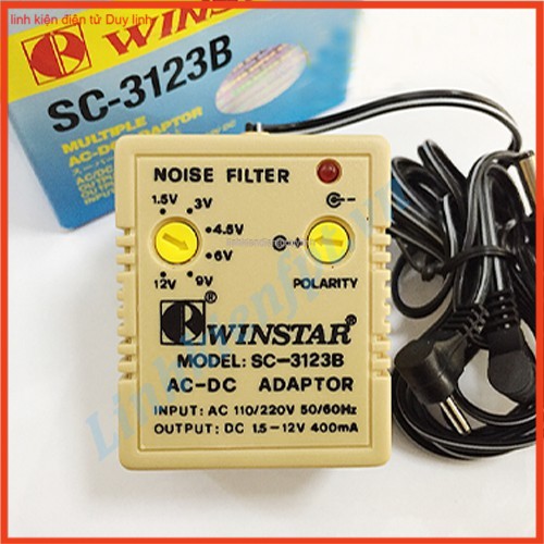 + Điện áp ra 6 đầu : 3V - 4.5V - 6V - 7.5V - 9V - 12V DC