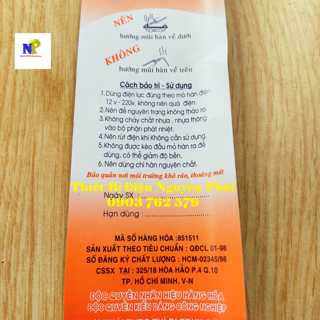 - Sử dụng đúng theo dòng điện của mỏ hàn điện 220V. Không vượt quá định mức.