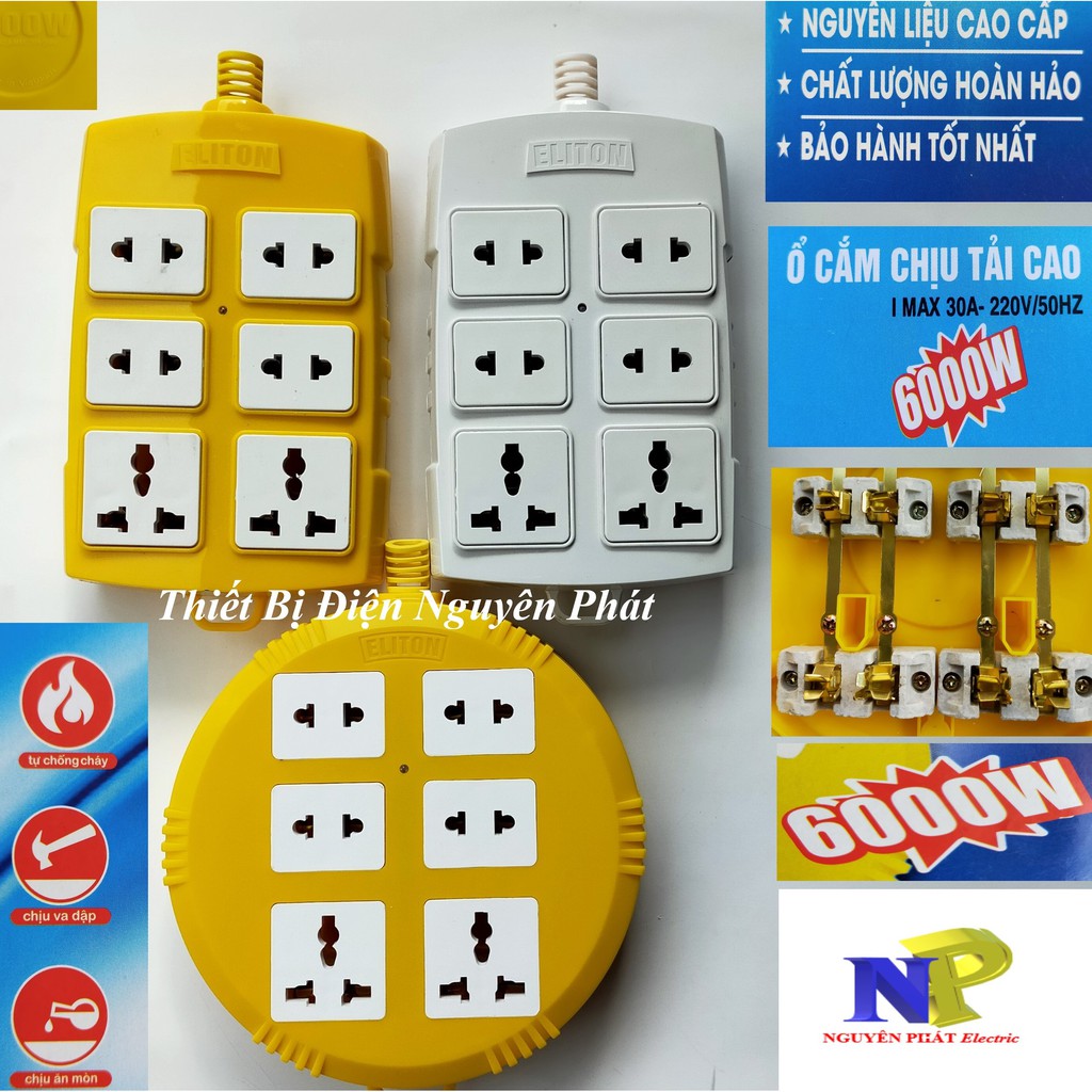 [Nguyên Phát] Ổ Cắm Chịu Tải Cao Lõi Bằng Sứ Cách Điện Chống Cháy Chống Va Đập Siêu Bền Eliton CS6000w👍 Ổ cắm điện 2,3,4,6,8 lỗ chịu tải 6000W Eliton ( không dây ).