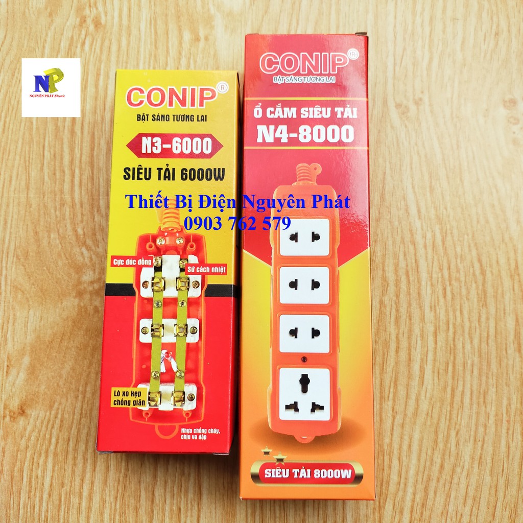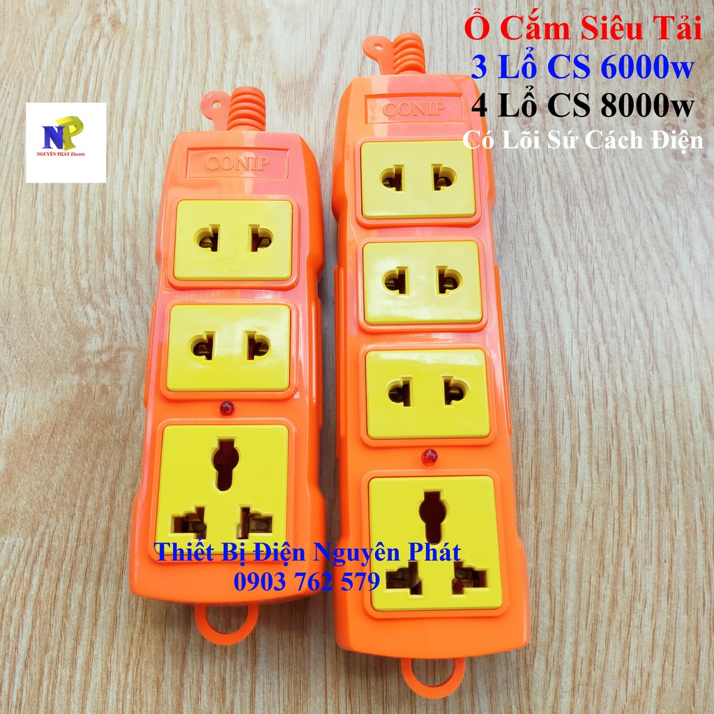 [Nguyên Phát] Ổ Cắm Siêu Tải Conip 3 Lổ CS 6000w 4 Lổ CS 8000w Có Lõi Sứ Cách Điện - Không Dây