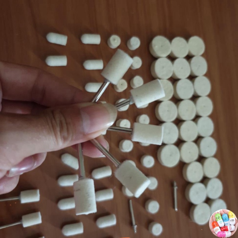 Nhà cửa & Đời sống > Dụng cụ & Thiết bị tiện ích > Dụng cụ > Giấy nhám, máy chà nhám và phụ kiện || Bộ đánh bóng đầu lông cừu nỉ đánh bóng chân cán 3ly dùng cho máy khoan mài mini (72 đầu bông + 2 cán + 2 lọ đánh bong)Còn hàng