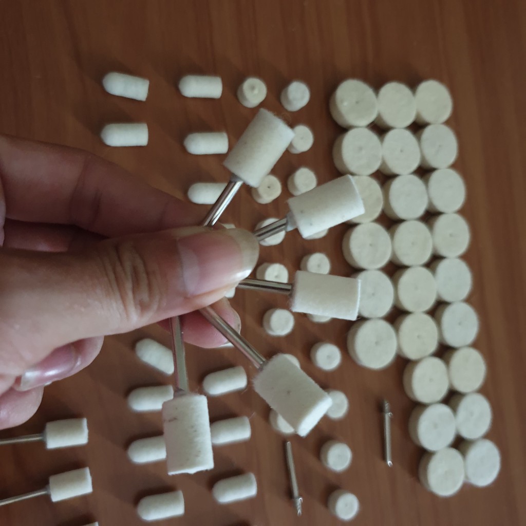 Nhà cửa & Đời sống > Dụng cụ & Thiết bị tiện ích > Dụng cụ > Giấy nhám, máy chà nhám và phụ kiện || Bộ đánh bóng đầu lông cừu nỉ đánh bóng chân cán 3ly dùng cho máy khoan mài mini (72 đầu bông + 2 cán + 2 lọ đánh bong)Còn hàng