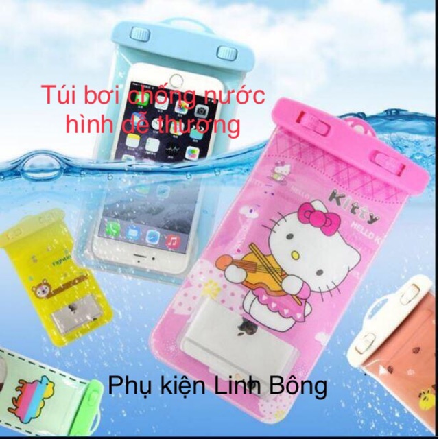 ( Có ảnh thật) Túi bơi chống nước đựng điện thoại có hình nghộ nghĩnh, nhiều màu sắc