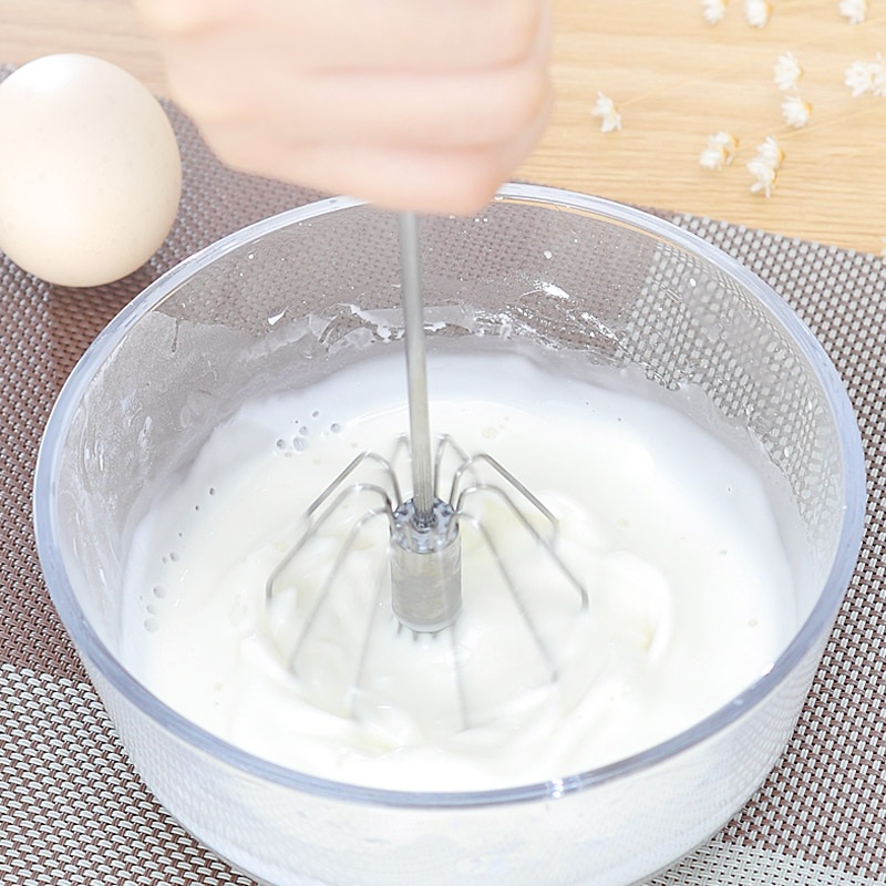 - Dụng cụ được thiết kế phần đánh trứng tự quay chỉ bằng lực ấn nhẹ ở tay cầm.