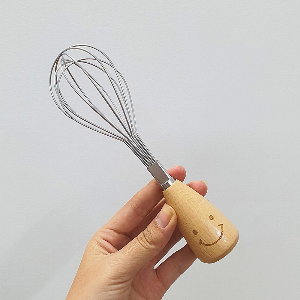 Nhà cửa & Đời sống > Dụng cụ nhà bếp > Phới đánh trứng || Cây đánh trứng cầm tay inox không gỉ cán cầm bằng gỗ in mặt cườiCòn hàng