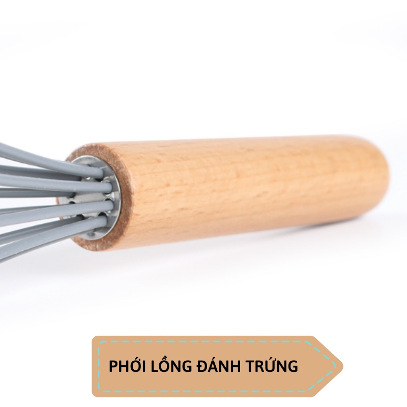 Cây Đánh Trứng Cầm Tay Silicon - Phới Lồng Đánh Trứng Cán Gỗ Tông Màu Pastel Cao Cấp - Dụng Cụ Đánh Trứng Nhiều Màu