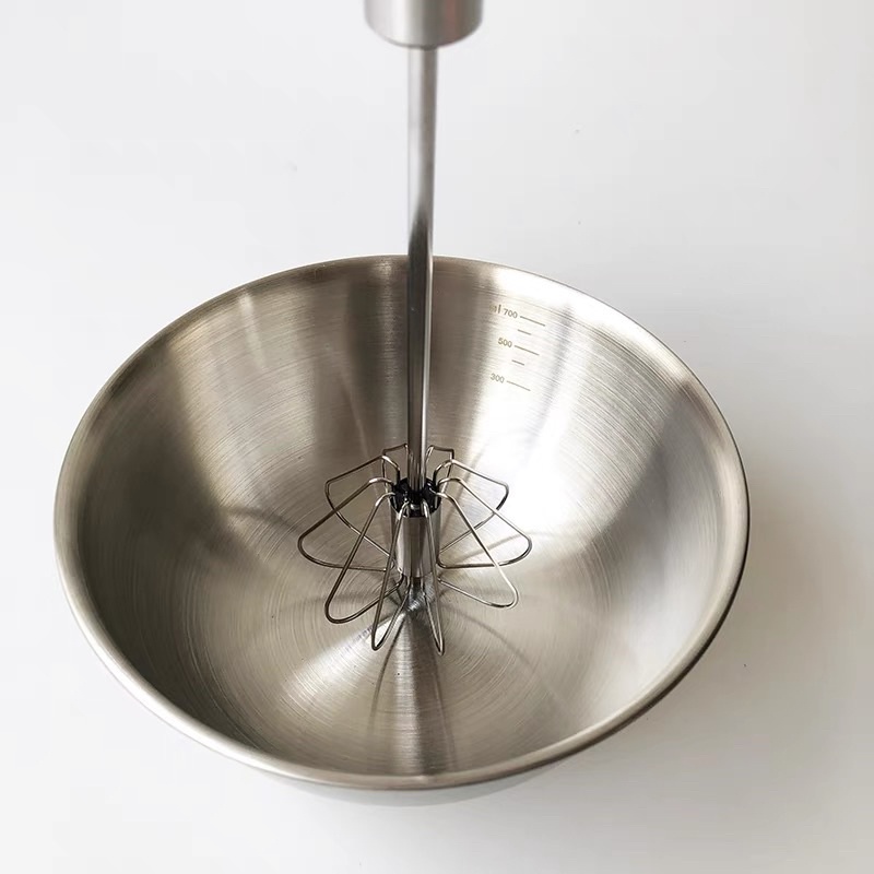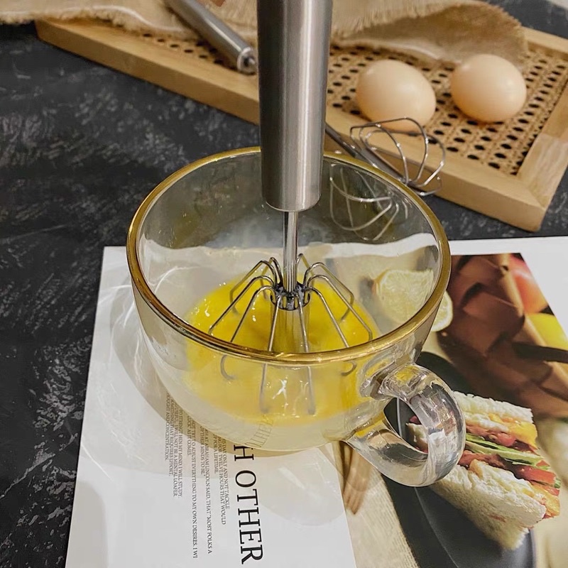 ✅Dụng cụ được thiết kế phần đánh trứng tự quay chỉ bằng lực ấn nhẹ ở tay cầm.