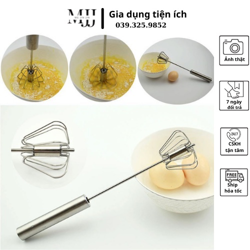 Nhà cửa & Đời sống > Dụng cụ nhà bếp > Phới đánh trứng || Cây đánh trứng có trục tự xoay bằng inox.Còn hàng