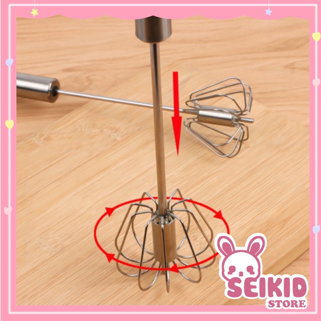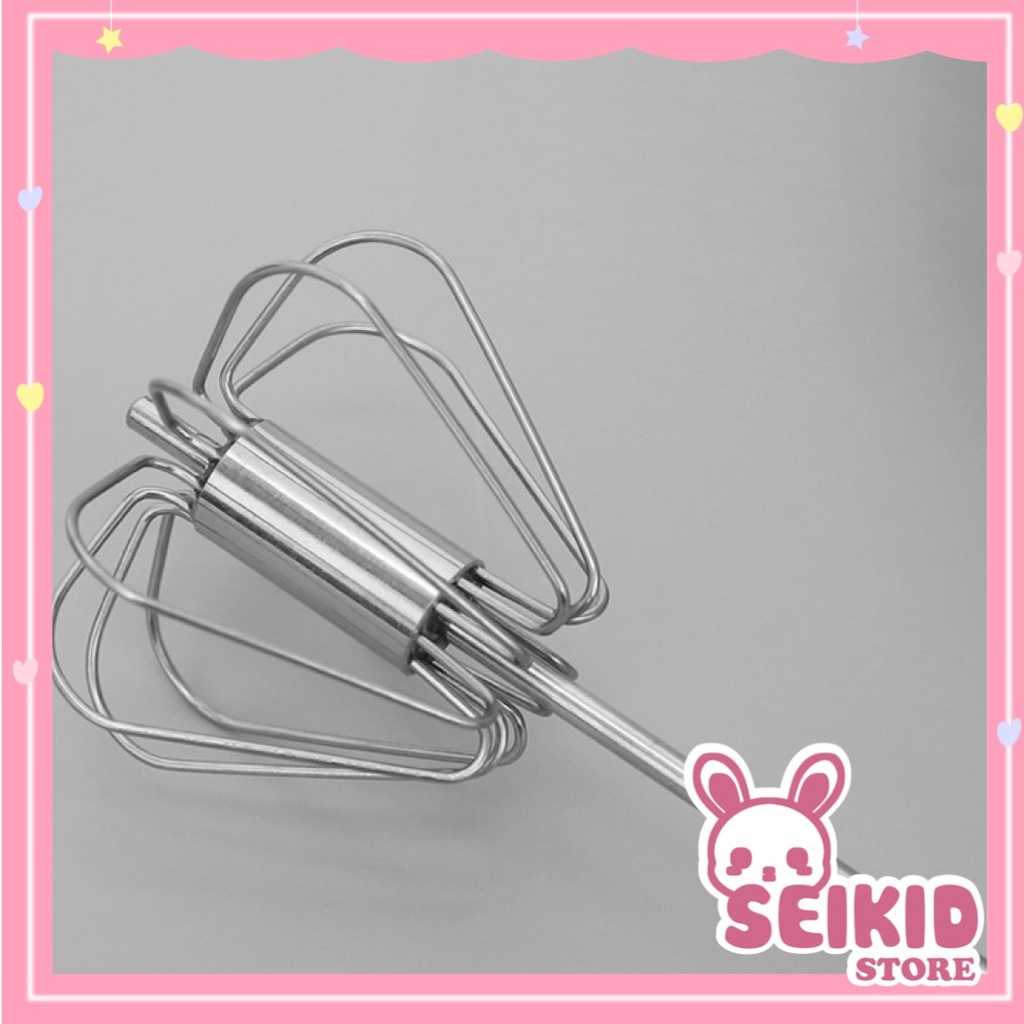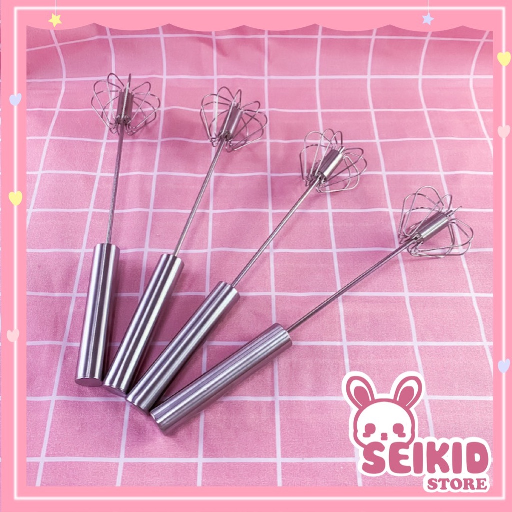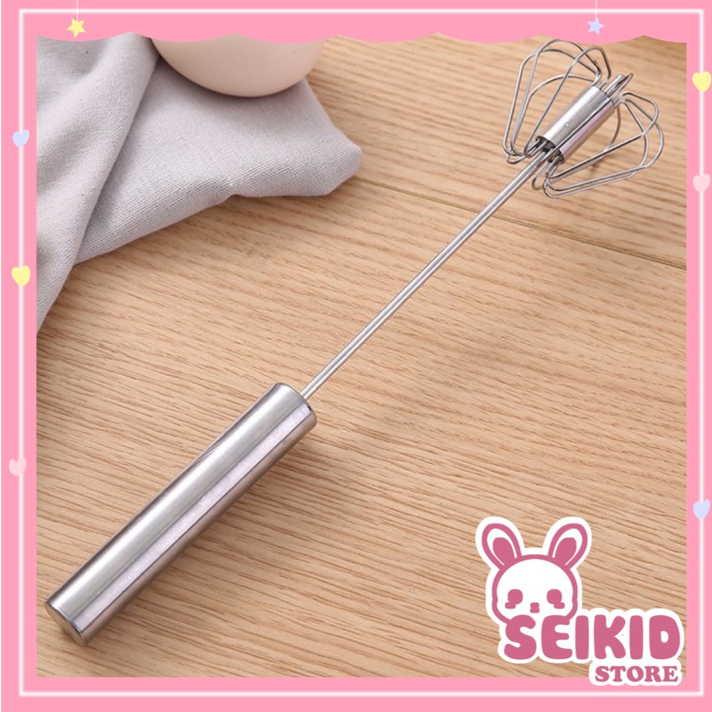 Cây đánh trứng inox cầm tay bán tự động tiện dụng - Dụng cụ đánh trứng tự xoay đa năng 30cm khuấy cà phê bột Seimy