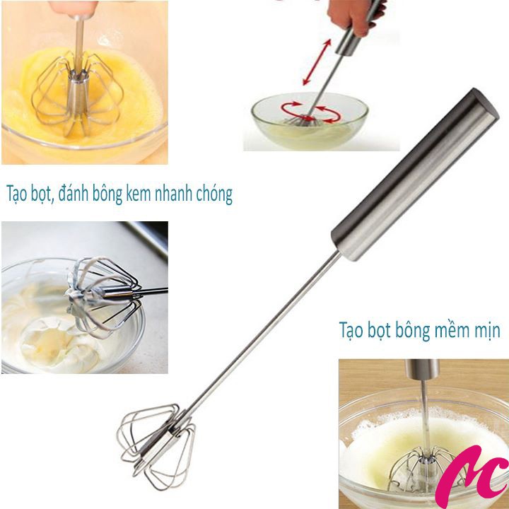Cây Đánh Trứng Inox Cầm Tay Có Trục Xoay Tự Động_MC324