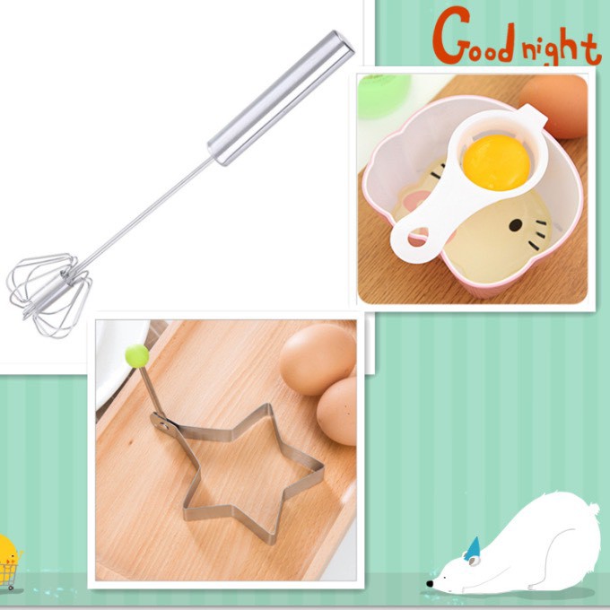 ✯ Dụng cụ được thiết kế phần đánh trứng tự quay chỉ bằng lực ấn nhẹ ở tay cầm.