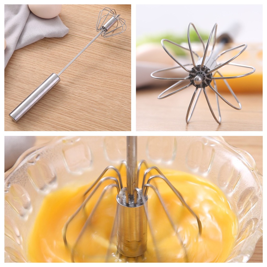 Dụng cụ được thiết kế phần đánh trứng tự quay chỉ bằng lực ấn nhẹ ở tay cầm.