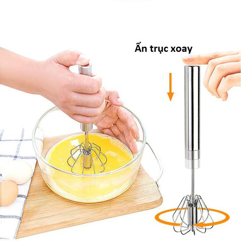 Cây đánh trứng inox có trục xoay tự động