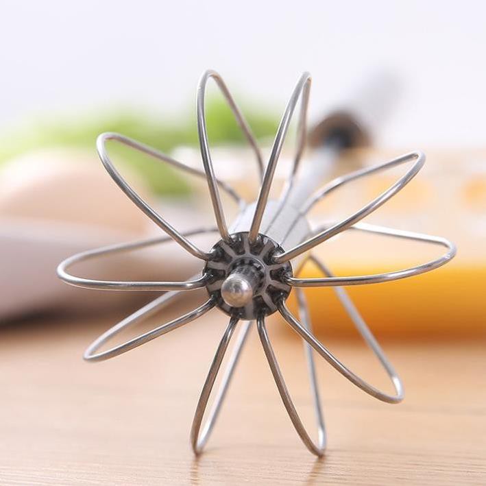 – Phần đánh trứng đặc biệt có khả năng tự quay, bạn chỉ cần ấn nhẹ vào tay cầm là vòng quay trứng tự xoay, giúp đánh bông trứng rất nhẹ nhàng mà không lo bị mỏi tay