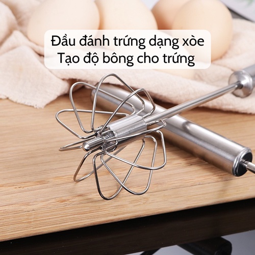 Cây đánh trứng 🥚SALE🥚 Dụng cụ đánh trứng cầm tay có trục xoay tự động thép không gỉ dễ sử dụng bền đẹp tiện dụng