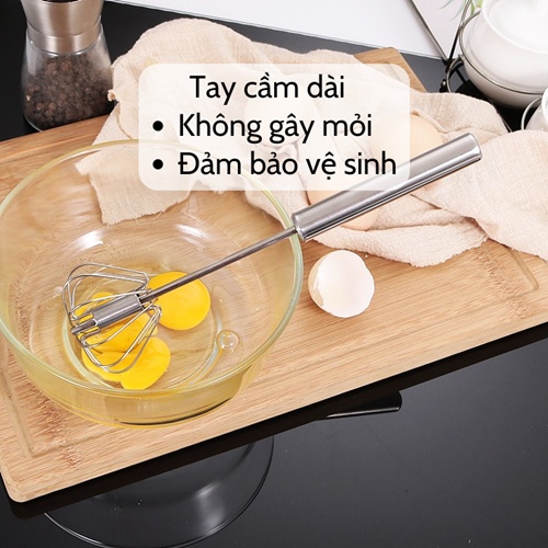 Cây đánh trứng 🥚SALE🥚 Dụng cụ đánh trứng cầm tay có trục xoay tự động thép không gỉ dễ sử dụng bền đẹp tiện dụng giá rẻ