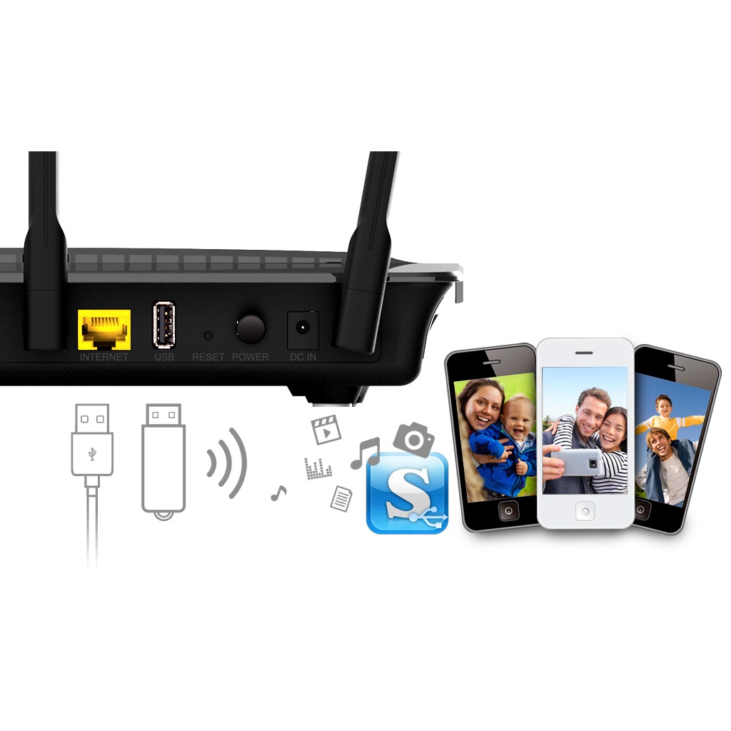Thiết bị phát Wifi không dây dành cho giải trí đa phương tiện, băng tần kép chuẩn AC 1900 (2.4Ghz:600Mbps+ 5GHz:1300Mbps), 3 ăng-ten Dual-band, Smart Beam: xem phim HD, game online, công việc độ nhạy cao cùng lúc cho nhiều thiết bị không dây; Hỗ trợ: CLOUD-mydlink (truy cập, quản lý từ xa phù hợp cho Gia đình có con nhỏ/Văn phòng vừa/nhỏ), IPV6, Media server-USB Shareport Mobile 1x3.0 + 1x2.0(chia sẽ dữ liệu+máy in nội bộ), Guestzone (tạo mạng riêng cho Khách truy cập), QRS Mobile, 4port x1Gbps LAN, 1port x1Gpbs WAN.- Chứng thực Wi-Fi chuẩn AC tốc độ tối đa 1Gbps (300 Mbps + 650 Mbps) tương thích ngược với chuẩn 802.11 a/b/g/n, sử dụng ăn ten ngầm thông minh, thiết kế thời trang tinh tế