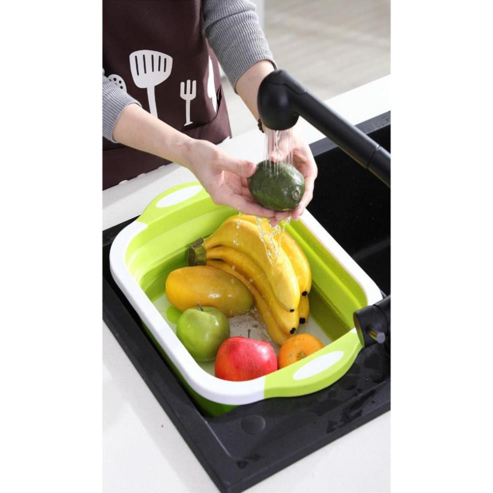 (NHÀ BẾP THÔNG MINH) Chậu gấp gọn kiêm thớt và rổ đựng đa năng loại LỚN 3in1 Đa Năng Tiện Dụng