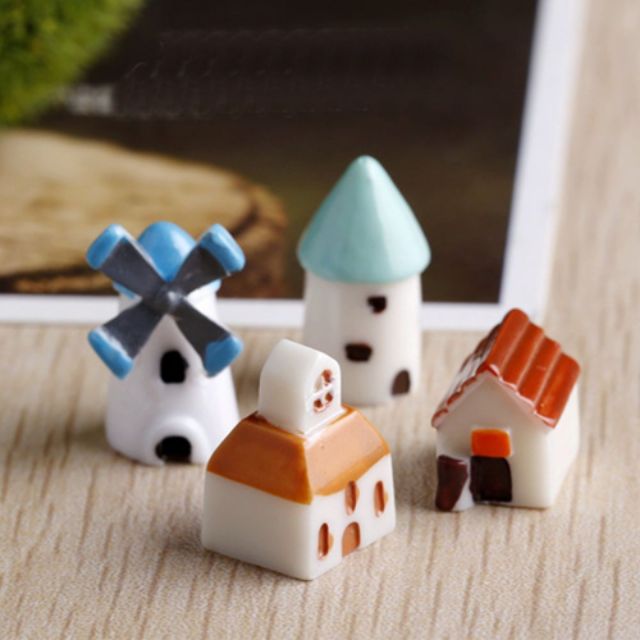Ngôi nhà, cối xay trang trí tiểu cảnh.Chất liệu: nhựa cao cấp