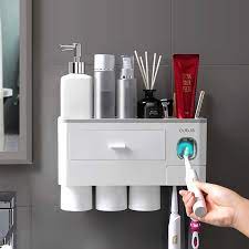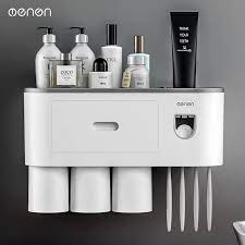 Nhả kem đánh răng 3 cốc siêu tiện lợi cho hộ gia đình có thể để đồ ở bên trên kệ