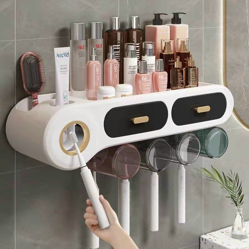 NHẢ KEM ĐÁNH RĂNG CÓ NGĂN KÉO ĐỰNG ĐỒ SIÊU SANG MẪU MỚI 2-4 Cốc