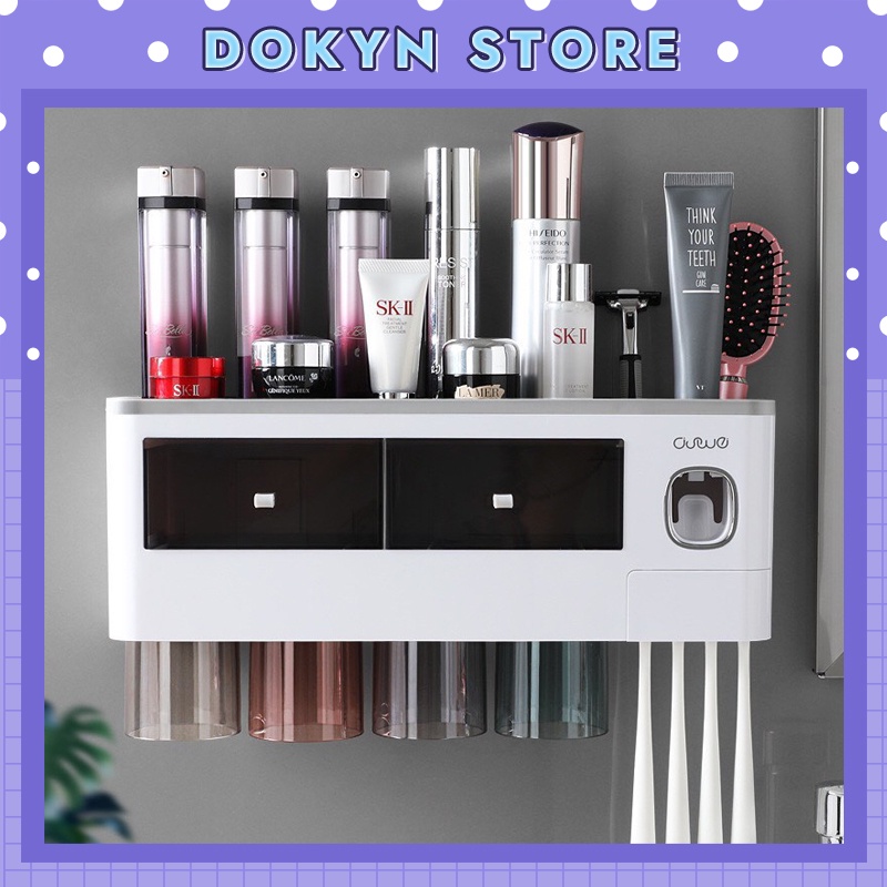 Bộ Nhả Kem Đánh Răng Cốc Màu Tự Động Kệ Để Đồ Phòng Tắm Dán Tường Cao Cấp Siêu Tiện Lợi NK01- Giá treo bàn trải đánh răng thiết kế thông minh tích hợp nhả kem đánh răng tự động