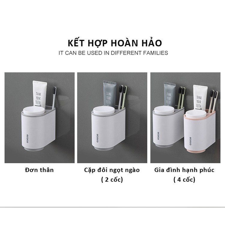 Bộ nhả kem đánh răng, đựng kem đánh răng và bàn chải kèm 2 cốc ecco