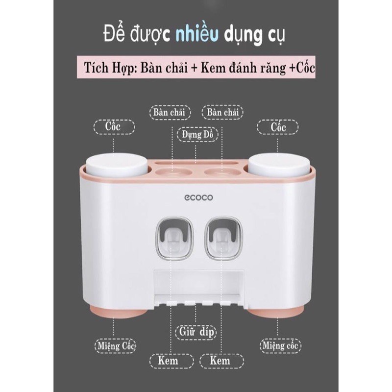 Bộ nhả kem đánh răng ECOCO cao cấp - Hộp đựng bàn chải nhả kem treo tường tiện dụng