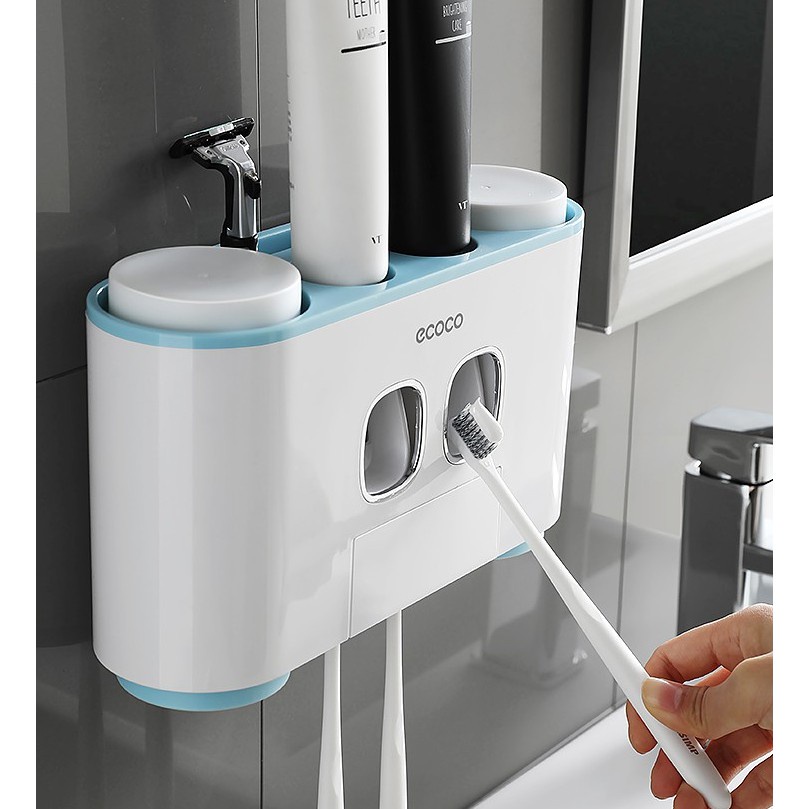Bộ nhả kem đánh răng ECOCO kèm 4 cốc cao cấp gắn tường