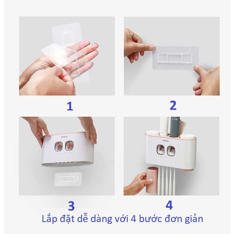 Giới thiệu Bộ nhả kem đánh răng, giá treo bàn chải kèm 4 cốc cao cấp