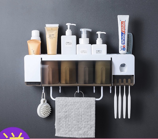 Bộ nhả kem đánh răng kèm kệ để đồ nhà tắm