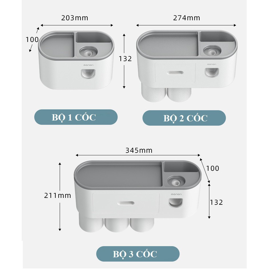 - Có hai kích thước là 3 cốc và 4 cốc để khách hàng lựa chọn phù hợp với nhu cầu gia đình và không gian phòng tắm, bồn rửa mặt
