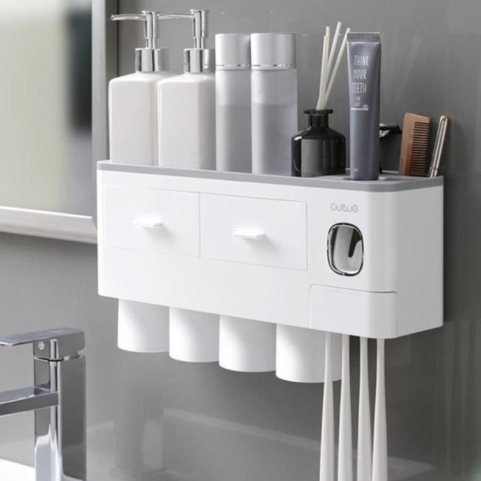 Nhả kem đánh răng T2K Shop tự động - Bộ nhả kem đánh răng tự động kệ để đồ phòng tắm cao cấpBộ Nhả Kem Đánh Răng Tự Động