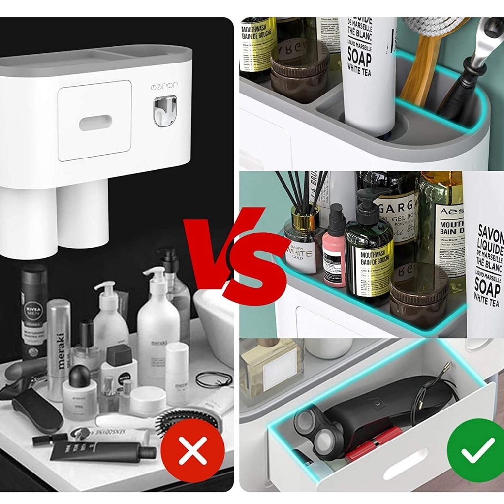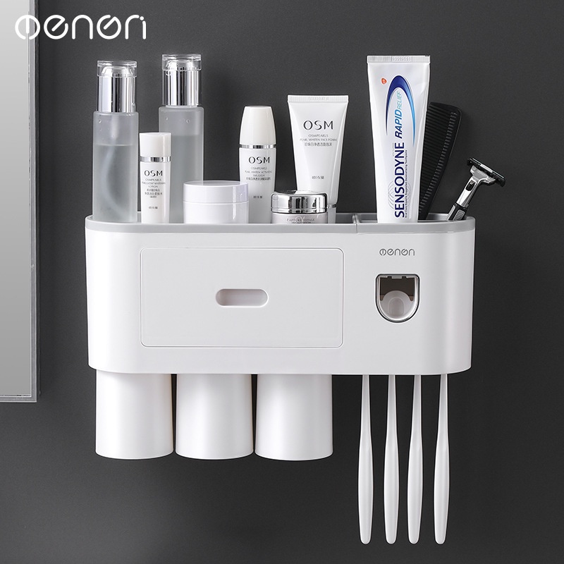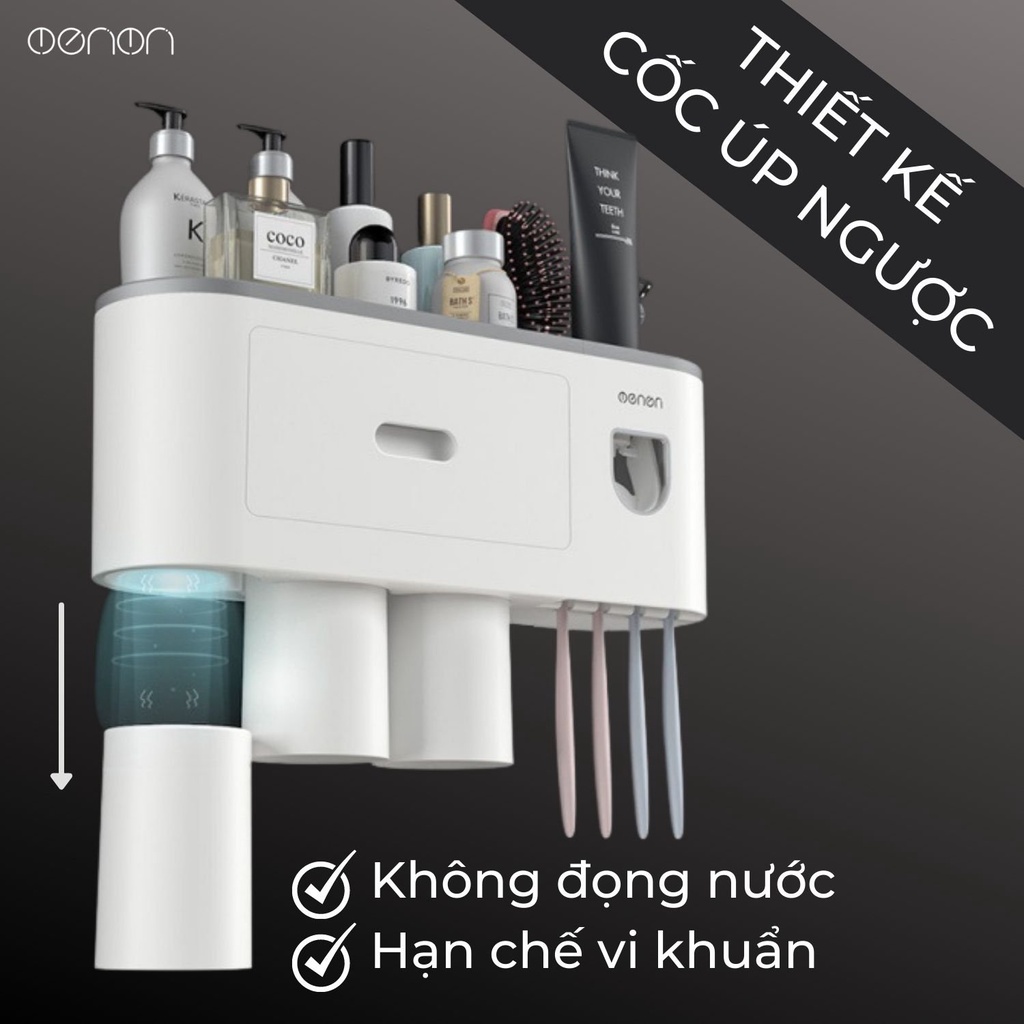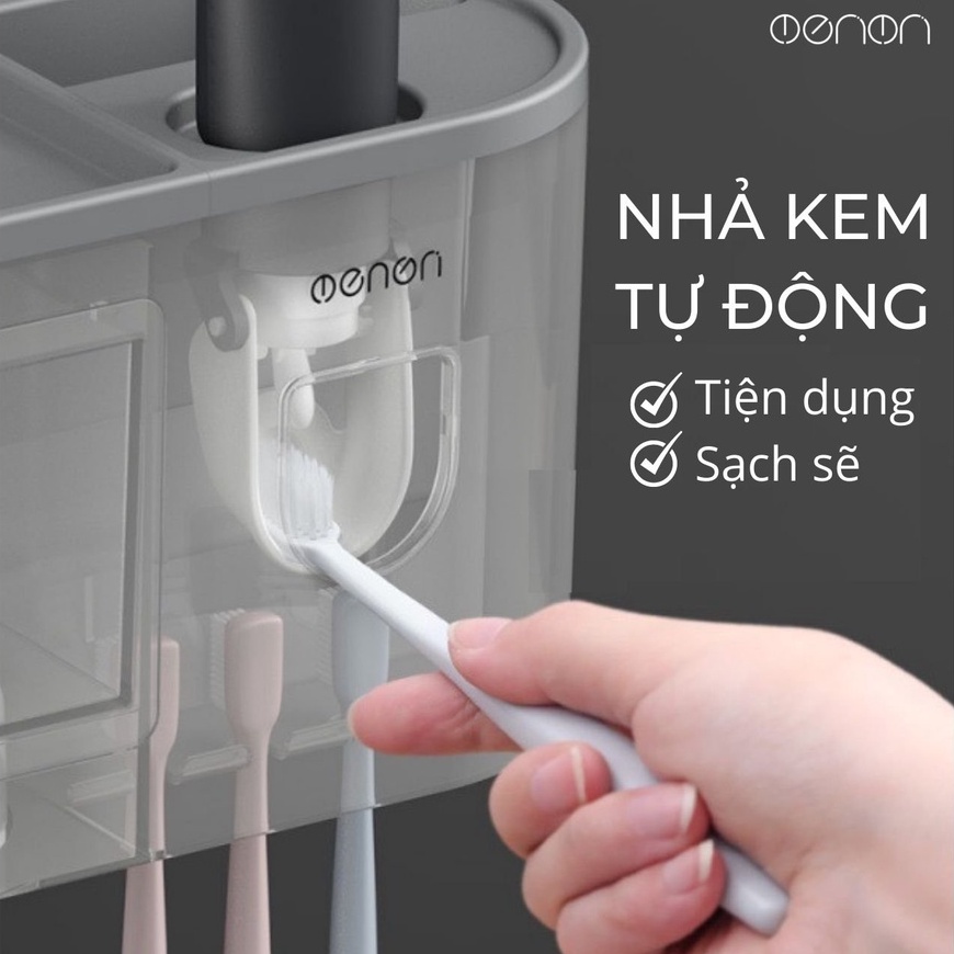 Bộ Nhả Kem Đánh Răng Thông Minh, Kệ Để Đồ Phòng Tắm Cao Cấp OENON Chính Hãng (Tặng Kèm Miếng Dán Tường)