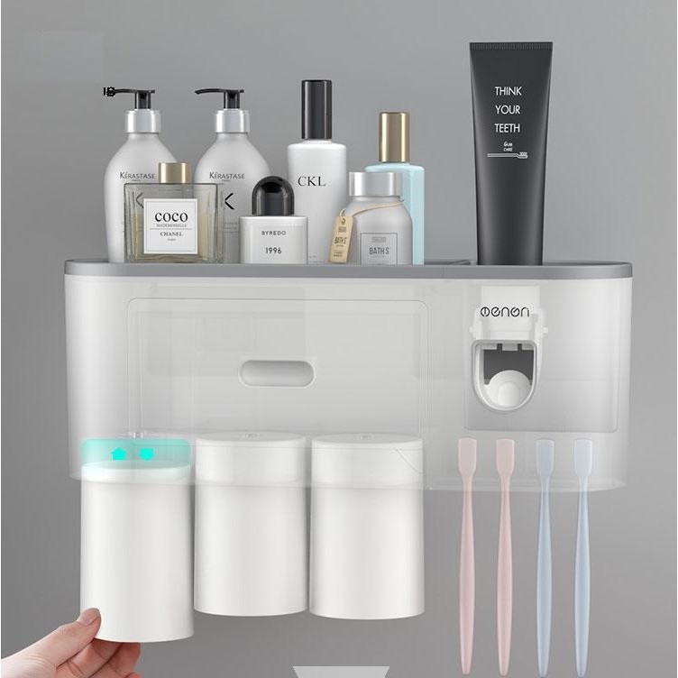 Bộ Nhả Kem Đánh Răng Thông Minh OENON Cao Cấp, Kệ Để Đồ Phòng Tắm Đa Năng ( Tặng Kèm Miếng Dán )