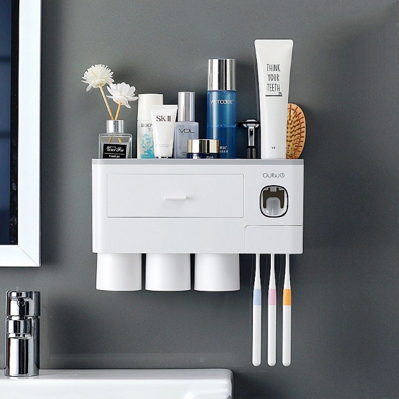 Nhà cửa & Đời sống > Đồ dùng phòng tắm > Kệ đựng bàn chải, kệ nhả kem đánh răng || Bộ nhả kem đánh răng tự động 3 cốc treo tường dán tường Misy home kiêm kệ để đồ tủ miniCòn hàng