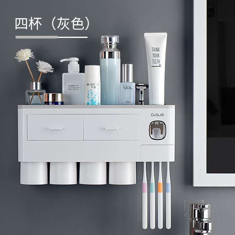 Bộ nhả kem đánh răng tự động 4 cốc đựng đồ thông minh dán tường siêu chắc chắn