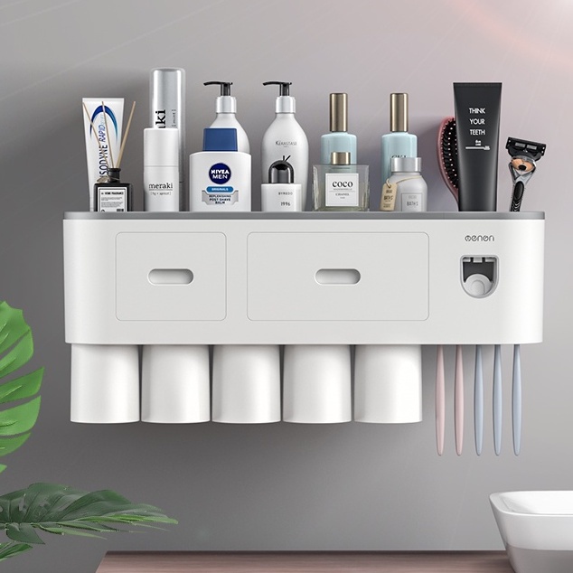 Nhà cửa & Đời sống > Đồ dùng phòng tắm > Kệ đựng bàn chải, kệ nhả kem đánh răng || Bộ Nhả Kem Đánh Răng Tự Động 5 Cốc Hút Từ Tính, Kệ Dán Tường OENON Chính Hãng Không Cần Khoan VítCòn hàng