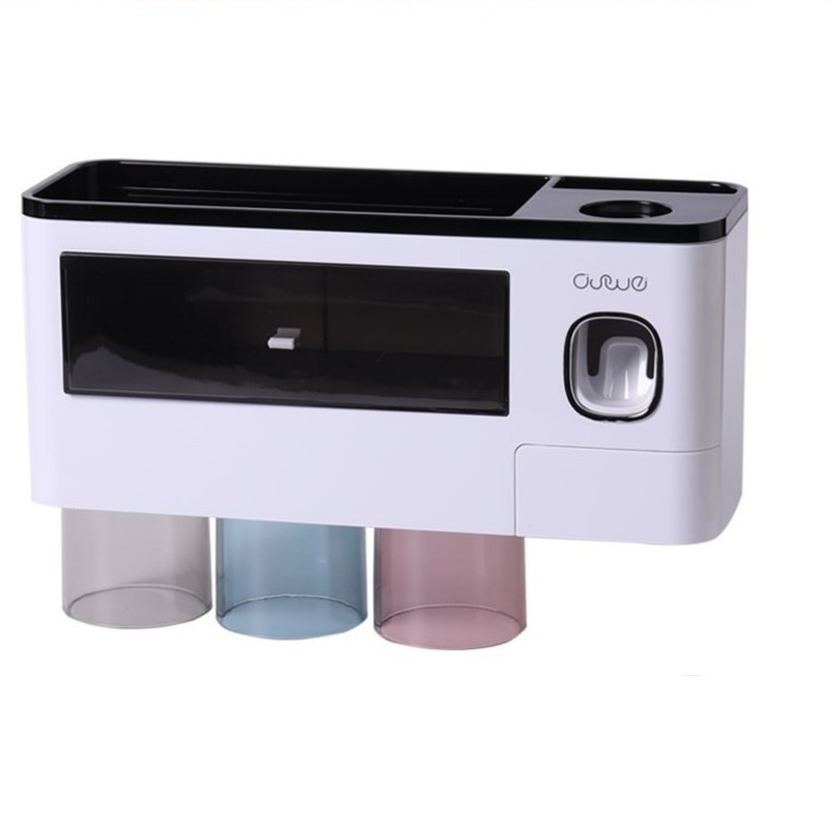 Bộ nhả kem đánh răng tự động - Bộ 3 cốc - Kệ để đồ phòng tắm thông minh - Kèm miếng dán siêu chắc chắn - A1909
