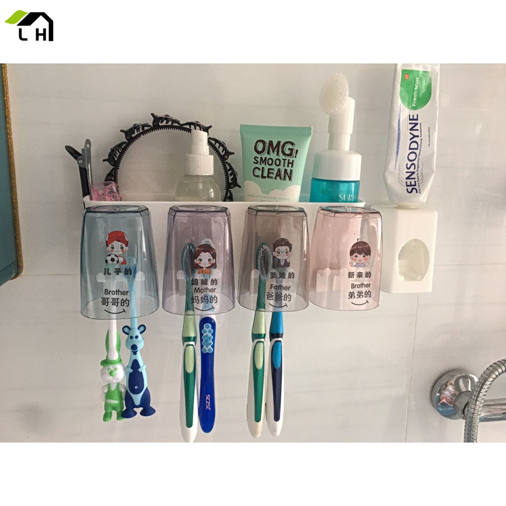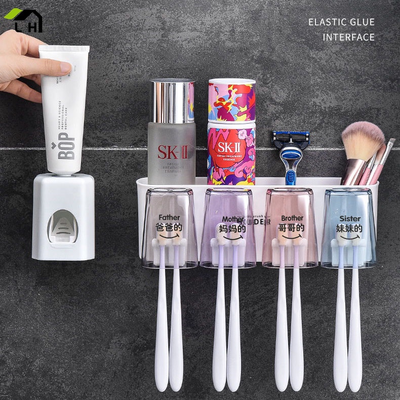 Bộ nhả kem đánh răng tự động - Đồ dùng phòng tắm, Kệ đựng bàn chải đánh răng dán tường kèm cốc-LO-5Welcome to Dear Customer!