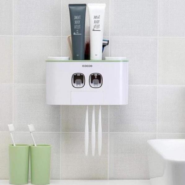 Bộ Nhả Kem Đánh Răng Tự Động ECoCo 4 Cốc, tặng kèm cốc đánh răng, giá treo bàn chải 2 Tuýp Kem Sạch Sẽ Và Tiện Lợi