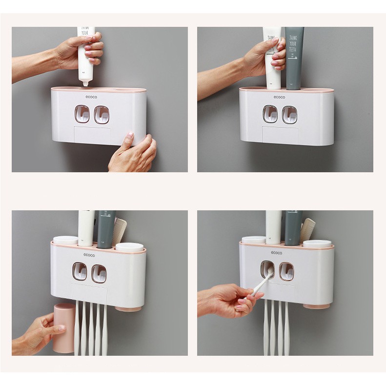 Bộ Nhả Kem Đánh Răng Tự Động ECOCO Cao Cấp Tặng Kèm 4 Cốc Đựng Đồ Phòng Tắm
