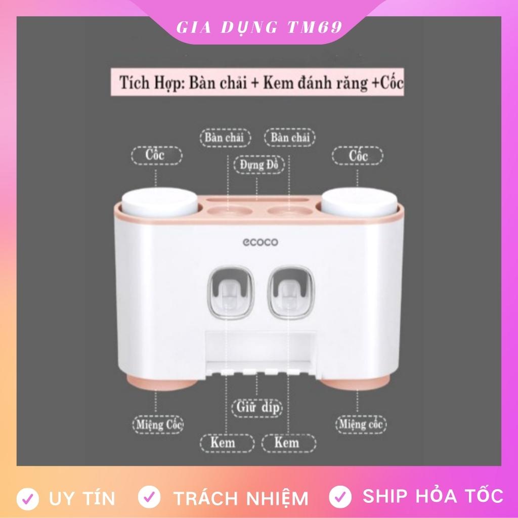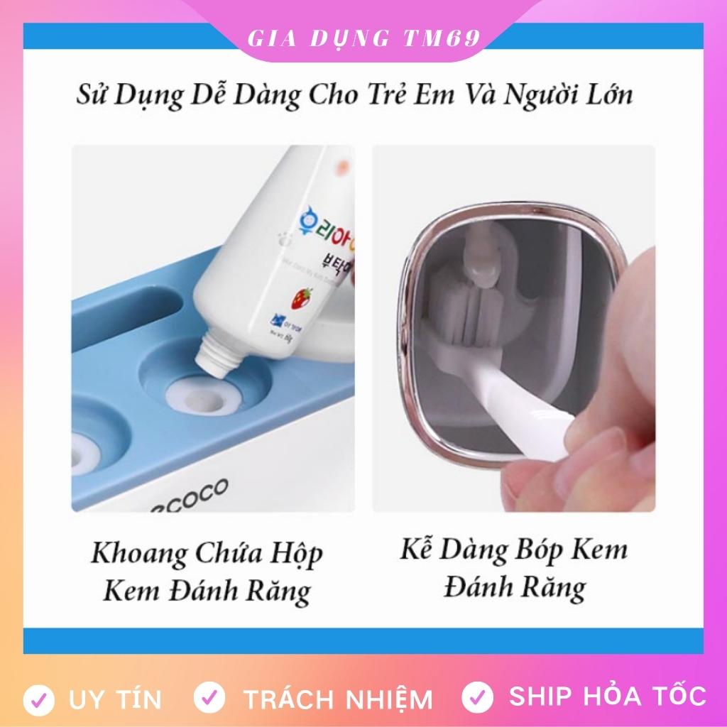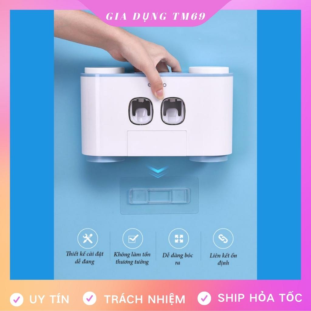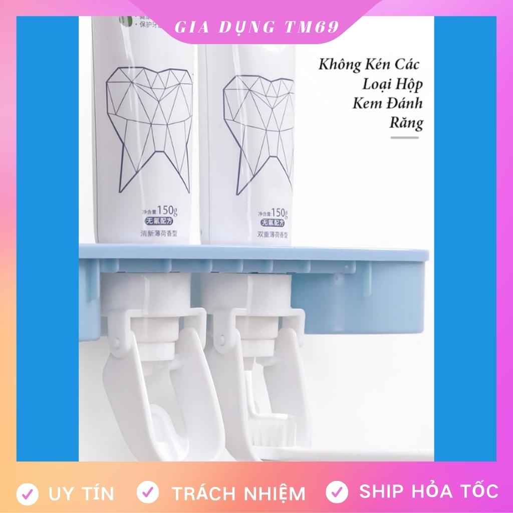 - Bộ nhả kem đánh răng tự động gồm: dụng cụ lấy kem đôi (kệ để bàn chải đánh răng) + 4 cốc + bộ dính tường