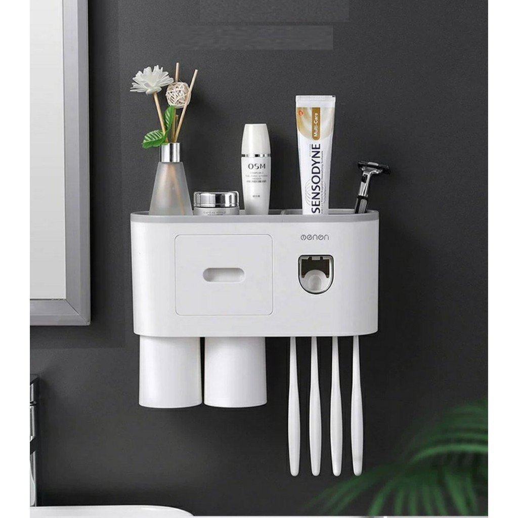 Bộ Nhả Kem Đánh Răng Tự Động, Kệ Để Đồ Phòng Tắm Cao Cấp (Bộ 3 cốc