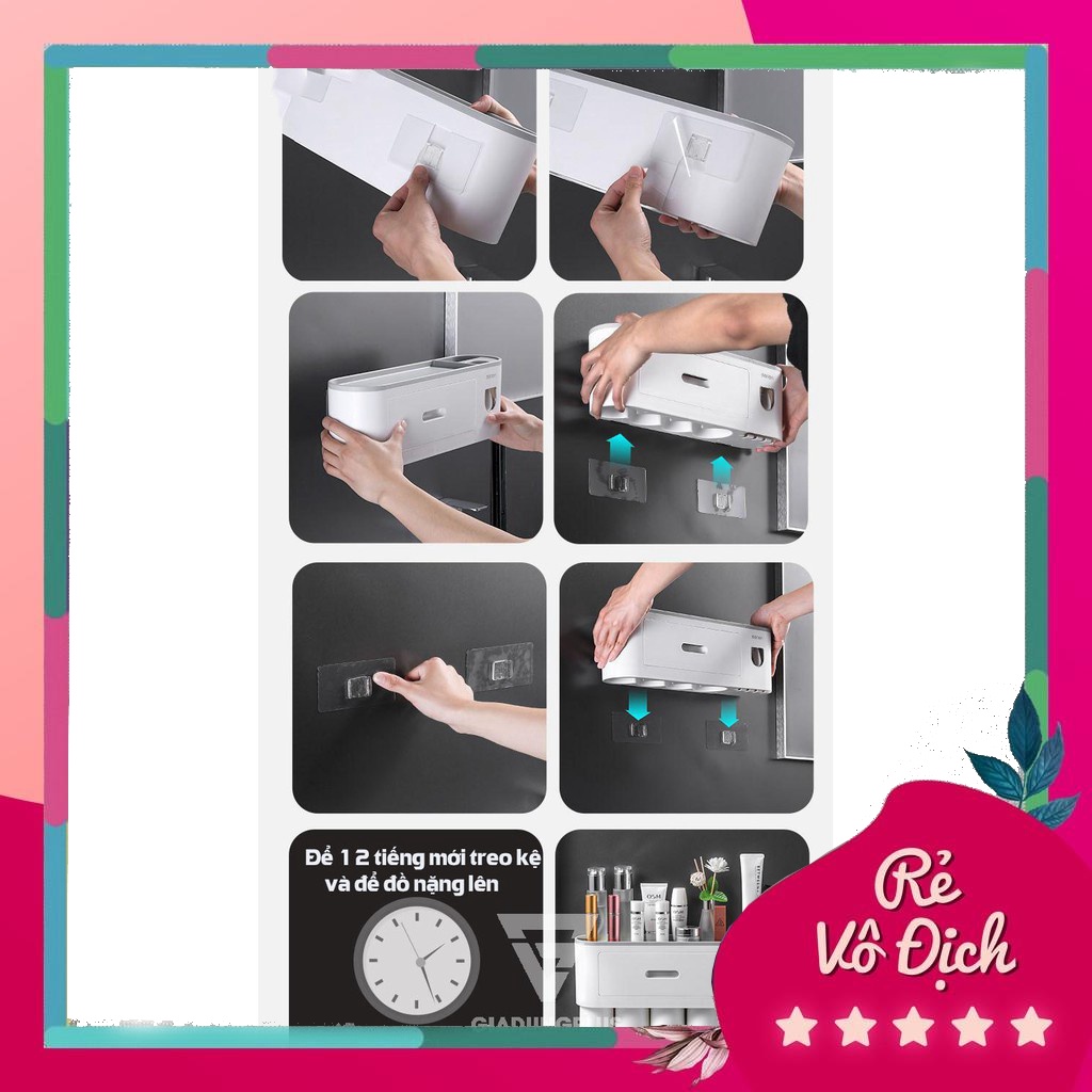 - Sản phẩm gồm: 1 Kệ nhà tắm tích hợp chức năng lấy kem tự động + Cốc hút từ tính + miếng dán tường