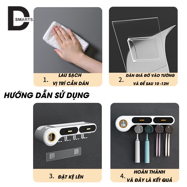 Bộ nhả kem đánh răng tự động, Kệ để đồ phòng tắm cao cấp kèm miếng dán* THÔNG TIN SẢN PHẨM :
