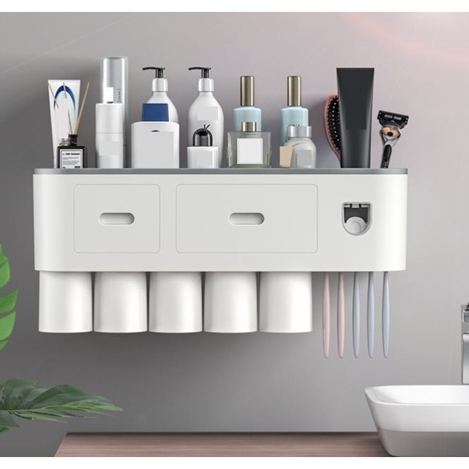 Bộ Nhả Kem Đánh Răng Tự Động, Kệ Để Đồ Phòng Tắm Cao Cấp ( Tặng Kèm Miếng Dán )
