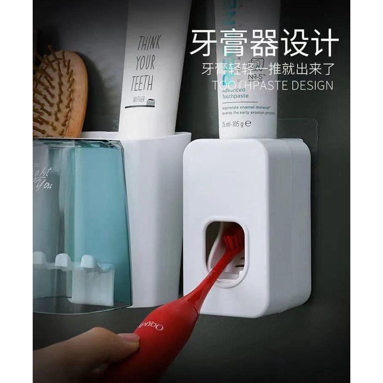 Bộ nhả kem đánh răng tự động kệ để bàn chải thông minh giá treo 4 cốc để đồ dán tường dùng cho nhà tắm XIAOMIMI S001