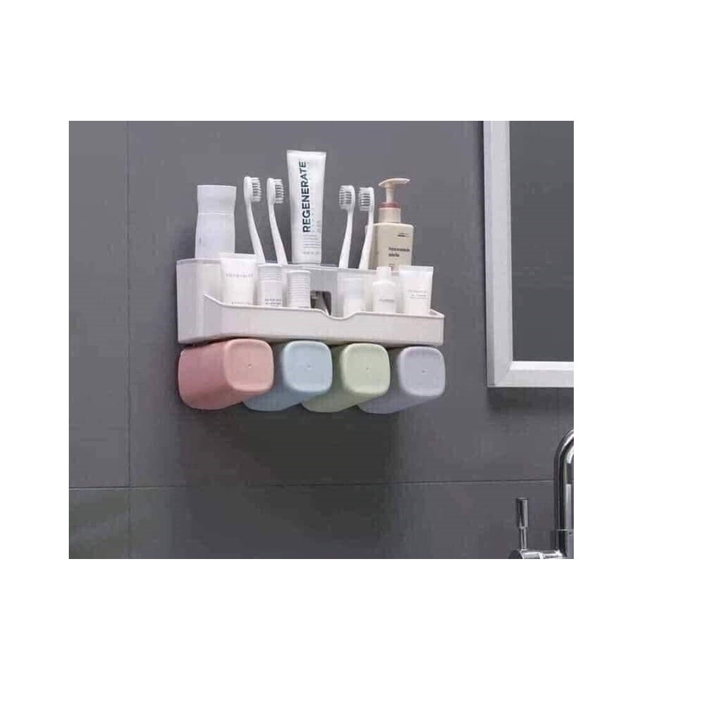 Kệ nhả kem đánh răng để bàn chải đánh răng kèm cốc dán tường nhà tắm là bộ sản phẩm đa năng gồm các thành phần tích hợp như: