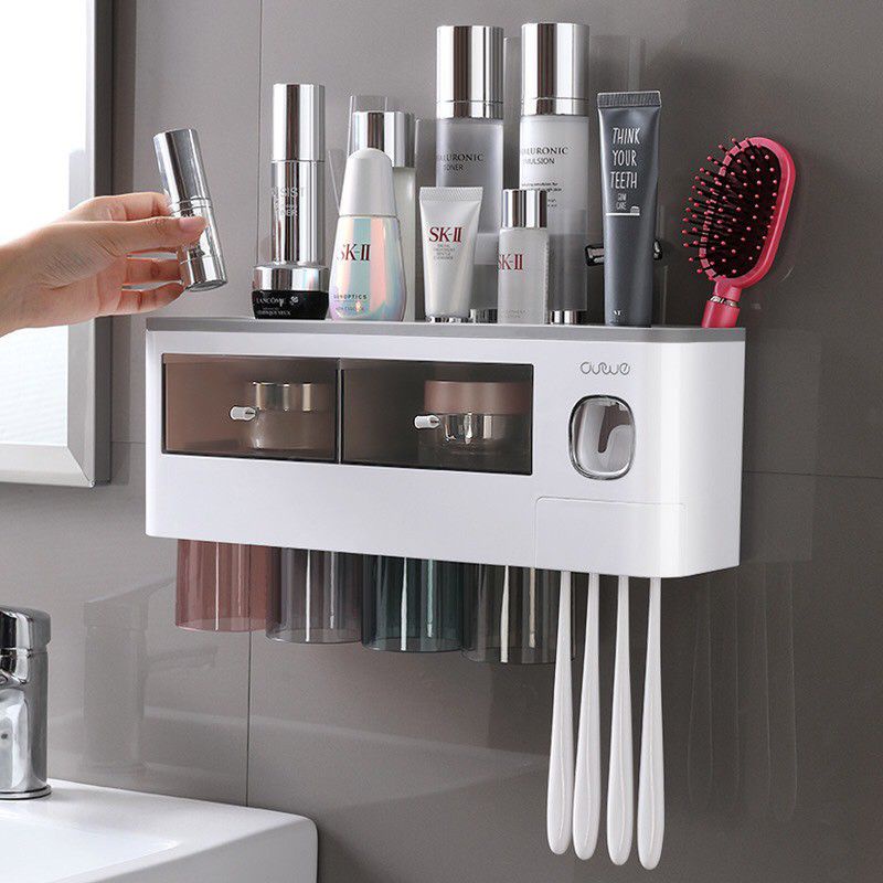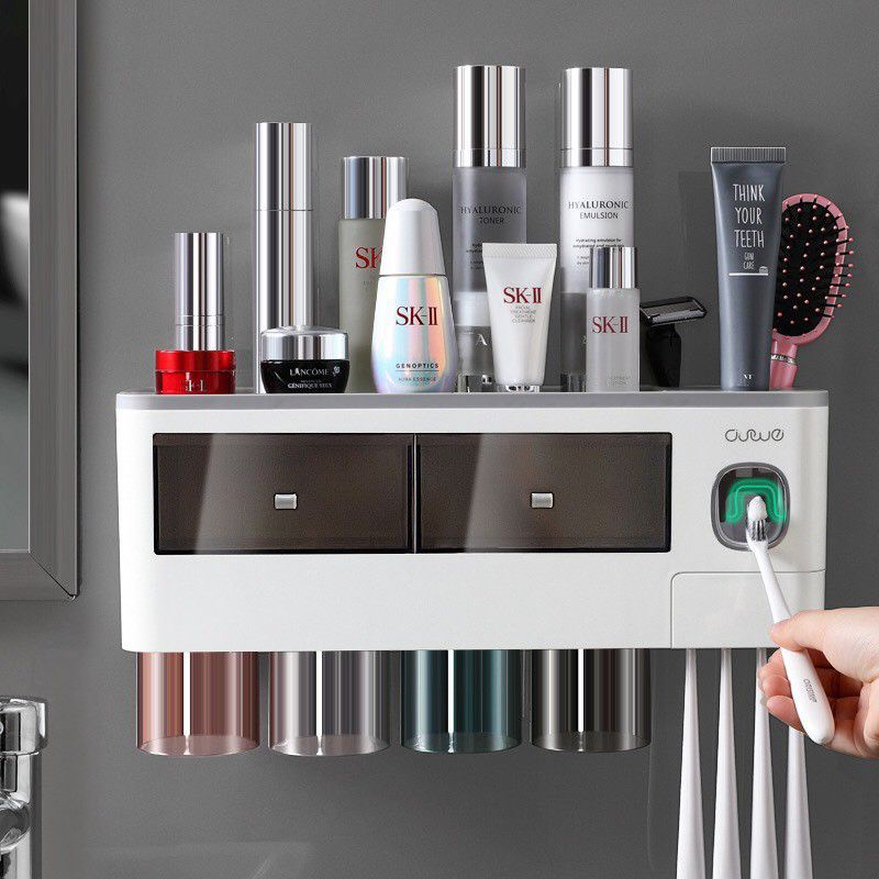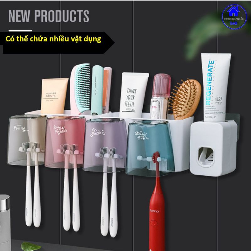Bộ Nhả Kem Đánh Răng Tự Động , Kệ Dán Để Đồ Nhà Tắm Dán Tường Cao Cấp 1,2,3,4 Cốc Nhiều Màu Cao Cấp Sang Trọng & An Toàn